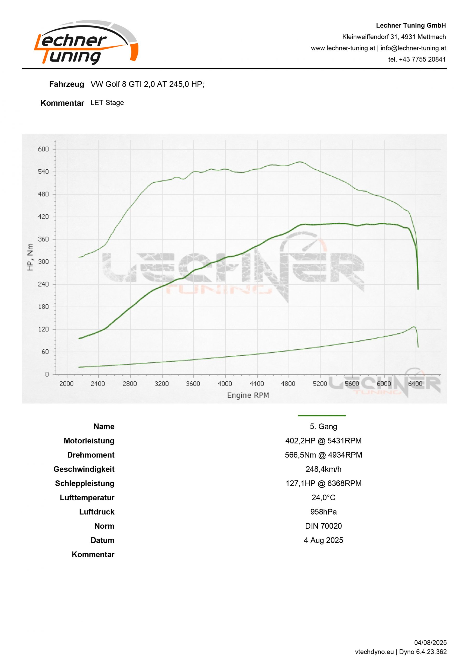 VW Golf 8 GTI 245PS OPF 2020 - LET Stage2